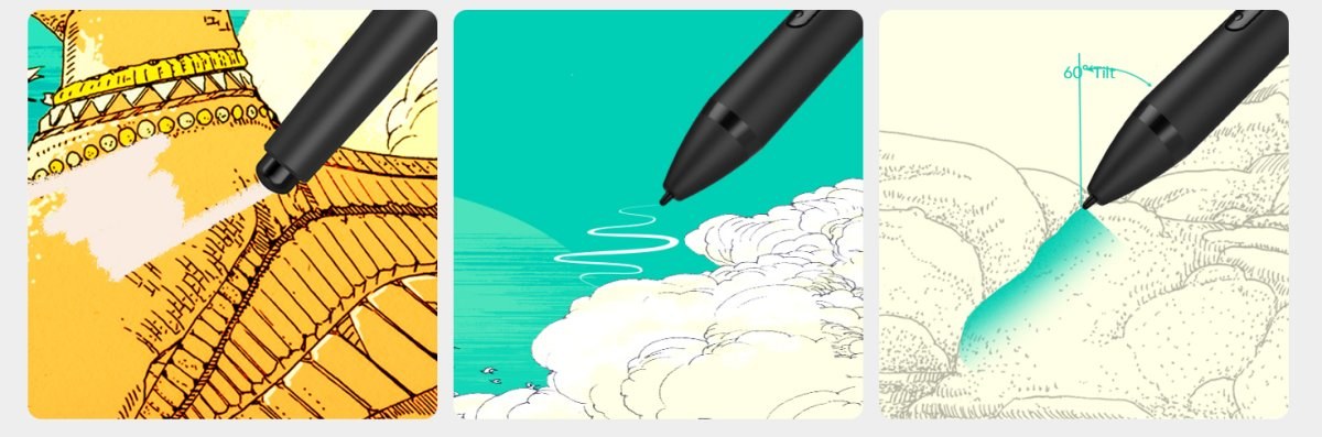 Stylus PH2 má na jednom konci gumu, ktorá vám umožní okamžite upraviť alebo odstrániť nežiaduce ťahy bez toho, aby ste museli prepínať medzi nastaveniami. Podpora až 60 stupňov náklonu a 8192 úrovní citlivosti na tlak vám umožní vytvárať nádherné čiary a plynulé tieňovanie.