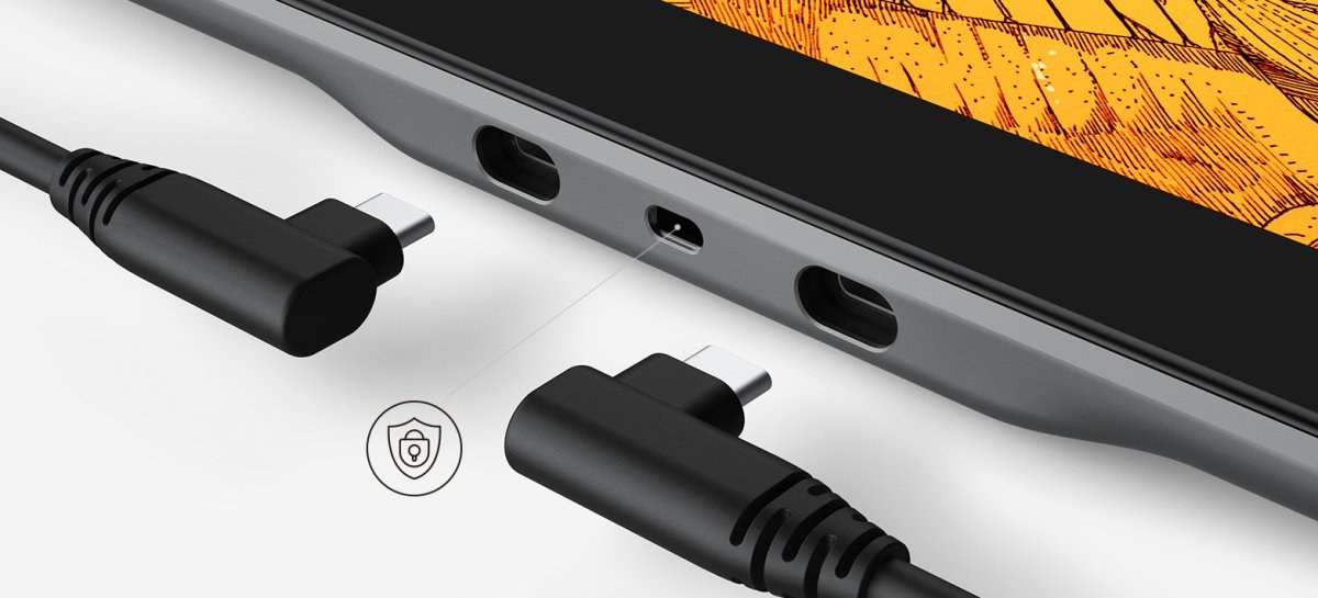 Tablet Artist Pro 16TP má dva plnohodnotné porty USB-C, ktoré podporujú pripojenie USB-C k USB-C, čo vám zaistí úhľadnú pracovnú plochu a viac možností pripojenia. Dodatočný bezpečnostný slot na boku vám tiež umožní chrániť váš tablet pred krádežou.