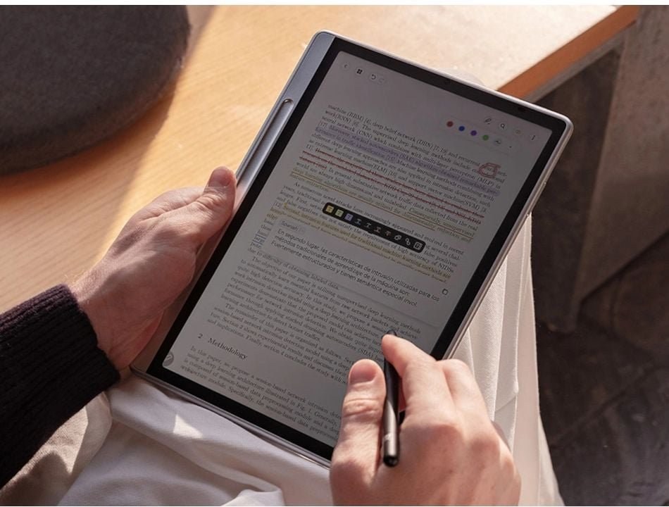 XPPen Magic Note Pad je inovatívne a všestranné zariadenie, ktoré odráža dlho očakávaný pokrok v oblasti farebných digitálnych zápisníkov. Tento štýlový a výkonný pomocník mení spôsob, akým čítate, píšete a tvoríte, vďaka revolučnému displeju X-Paper. V kombinácii s mimoriadne citlivým perom X3 Pro Pencil 2, ktoré podporuje až 16 384 úrovní prítlaku, a natívnou aplikáciou XPPen Notes vám Magic Note Pad umožní zachytiť vaše nápady s pozoruhodnou plynulosťou a efektivitou. Kľúčovou vlastnosťou tohto zariadenia je úplne nový displej X-Paper 3 v 1, ktorý posúva celkovú kvalitu obrazu na pozoruhodnú úroveň. Poskytuje vizuálny zážitok podobný papieru s vernými farbami, plynulým pohybom a ostrými detailmi. Antireflexný nanoleptaný povrch displeja výrazne znižuje odlesky a odraz svetla, takže každé písmeno, ktoré čítate alebo píšete, vyzerá, akoby bolo skutočne na papieri. Vizuálny a hmatový komfort, ktorý Magic Note Pad ponúka, z neho robí výnimočný nástroj pre váš tvorivý proces. Na rozdiel od obmedzených možností elektronického atramentu podporuje Magic Note Pad až 16,7 milióna farieb s jasom 400 nitov. Jeho vynikajúce možnosti vykresľovania farieb nielenže zlepšujú váš zážitok z čítania a písania poznámok, ale tiež zvyšujú vašu kreativitu.Zobrazenie ako na papieri