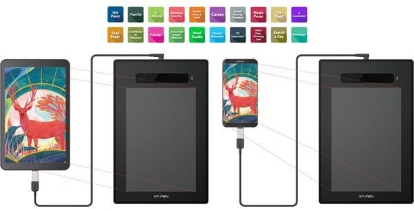 XP-Pen G960S podporuje pripojenie so zariadeniami Android 6.0 a vyšší. Spolupracuje s väčšinou hlavných softvérov tretích strán, ako sú napríklad ibis Paint X, FlipaClip, Medibang, Autodesk Sketchbook, Zenbrush alebo i ArtRage, a prináša vám všetky nové kreatívne zážitky s extrémnou presnosťou a potenciálom.Prenosný a elegantný