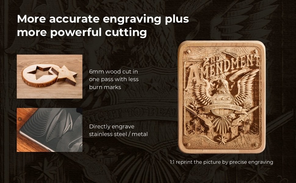 Najlepšia zmenšená priemyselná vysokovýkonná laserová gravírovacia a rezačka pre začínajúcich podnikateľov / nadšencov / dizajnérov / umelcov / domácich majstrov / profesionálov.Lepšie technológie (koleso a hriadeľ z priemyselnej ocele / napínacie koleso / synchrónny remeň / stlačený svetelný bod atď.) robia vyrezávanie presnejším a vyrezávanie funguje perfektne. Vďaka humanizovanejším dizajnom sa môžete neustále sústrediť na svoju tvorbu.