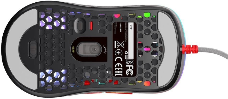 Moderný snímač PMW 3389 od Pixart sníma pozadie s 16 000 CPI a zaujme svojou extrémne vysokou presnosťou. Prepínač CPI na spodnej strane Xtrfy M42 RGB umožňuje zmeny citlivosti snímača. M42 RGB je navrhnutý pre veľmi rýchle pohyby myši až do 400 IPS (palcov za sekundu, približne 1 016 cm/s). Vzorkovacia frekvencia cez USB je 1 000 Hz. O spracovanie signálu sa stará 32-bitový mikrokontrolér od ARM.Technické parametre
