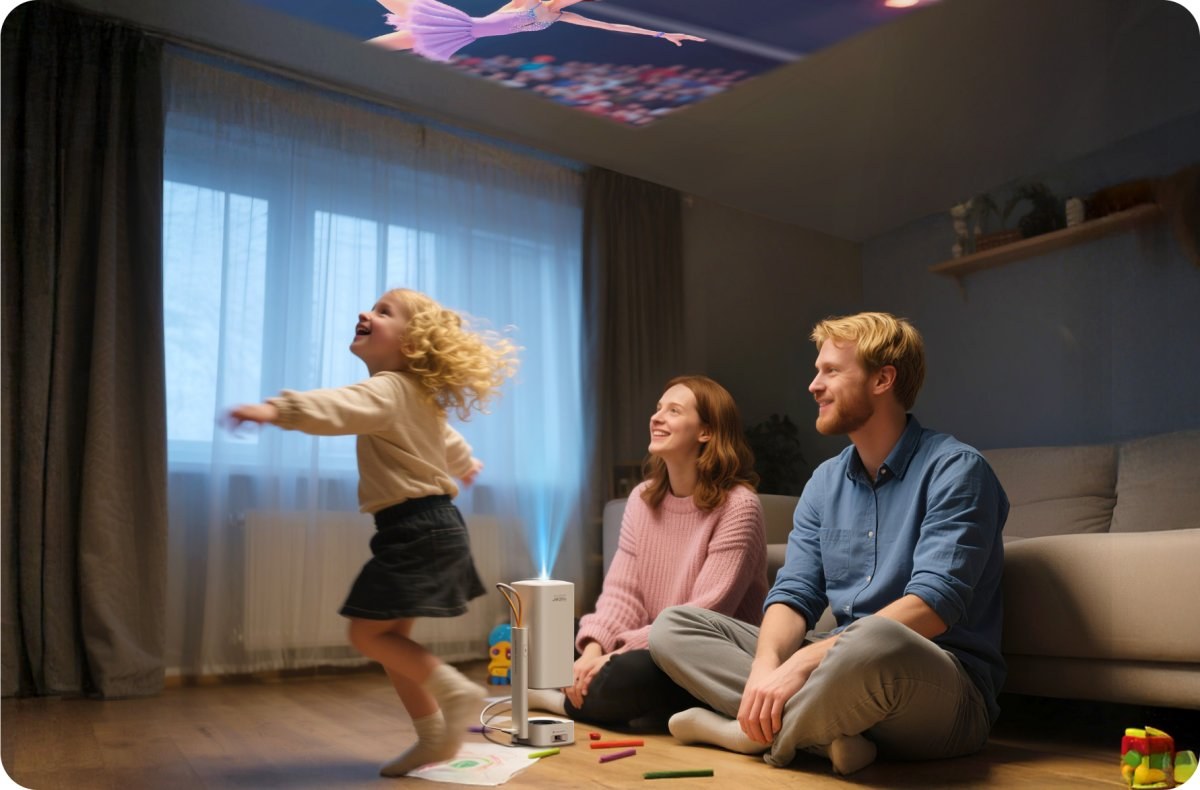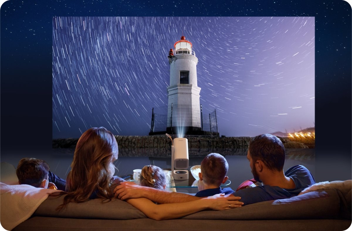 Projektor obsahuje aj inteligentné ambientné osvetlenie, ktoré ponúka režimy teplého, studeného a nočného svetla. Jas je nastaviteľný od 20 % do 100 %, čo umožňuje jeho využitie aj ako nočné svetlo. Vďaka Linuxovému operačnému systému a predinštalovaným aplikáciám ako Netflix či YouTube si môžete užívať obsah bez potreby externého zariadenia. Projektor je navrhnutý tak, aby poskytoval kino zážitok kdekoľvek – doma, na záhrade, v stane či na cestách.