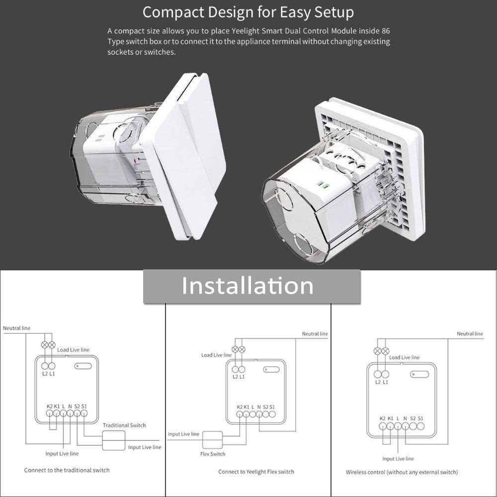 Duálny kontrolný modul Yeelight je schopný z klasického zariadenia vytvoriť inteligentné a to len vďaka pripojeniu k WiFi, alebo Bluetooth. Jeho ovládanie je možné cez aplikáciu, špeciálnym diaľkovým ovládačom, alebo aj pomocou Vášho hlasu.