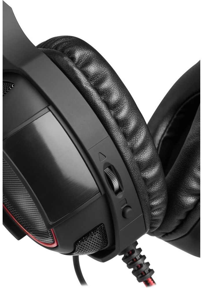Herná náhlavná súprava SABOTAGE s 7.1 kanálovým priestorovým zvukom obohateným o basové vibrácie prináša pôsobivé herné zážitky a atmosféru. Vďaka realistickému priestorovému zvuku počujete každý krok alebo pohyb vašich nepriateľov s presnou lokalizáciou a budete pripravení k obrane alebo sabotáži ich akcií zo správneho smeru. Poloha mikrofónu je nastaviteľná pomocou ohybného krku, aby bola zaistená perfektná a čistá hlasová komunikácia. Decentná LED signalizácia informuje o používaní alebo stlmení mikrofónu. Ovládanie hlasitosti a stlmenie mikrofónu - vypínač vibrácií sú zabudované do ľavého slúchadlá pre jednoduchý a rýchly prístup k nastaveniam a zamedzenie napínanie kábla, ku ktorému dochádza u bežných ovládačov na kábli. Hlavový most so samočinným nastavením a náušníky sú navrhnuté pre absolútne pohodlie pri dlhom hraní hier. Statické decentné červené podsvietenie definuje váš herný štýl a zaisťuje viditeľnosť náhlavnej súpravy v tmavom prostredí - počas hrania hier neruší vás, ani vaše spoluhráčov. Pre pohodlné a neobmedzené užívanie sa táto náhlavná súprava pripája k počítaču pomocou opleteného kábla s dĺžkou 2,4 m s ochranou proti zamotaniu a pozláteným konektorom USB.