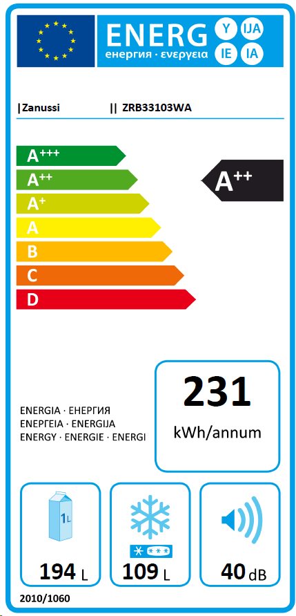 Zanussi ZRB33103WA chladnička kombi
