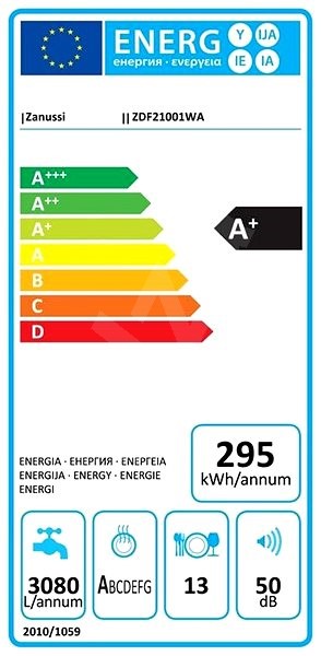 Spotreba vody a energie: 11 l, 1.039 kWh s programom Eko 50°C