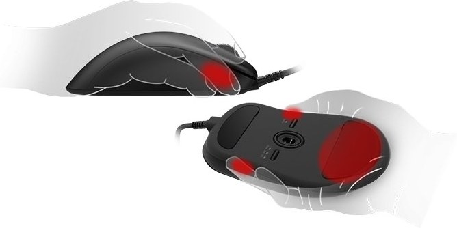 ZOWIE EC1-C má ergonomický dizajn, ktorý je špeciálne prispôsobený pre pravákov. Jej tvar je navrhnutý tak, aby poskytoval pohodlný úchop pre rôzne štýly držania myši, vrátane palm grip a claw grip. Myš je ľahká, váži len 80 gramov, čo znižuje únavu ruky počas dlhodobého používania.Vysoká presnosť a rýchlosť